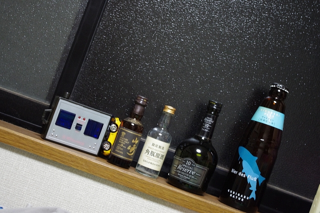 これは部屋の窓のところに置いてある、酒とかの空き瓶ですね。はい。