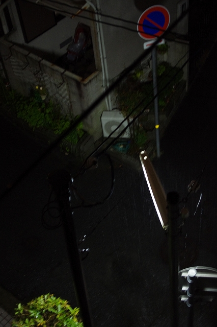 雨、です、な。夜の雨。 雨粒 は 丸い 。